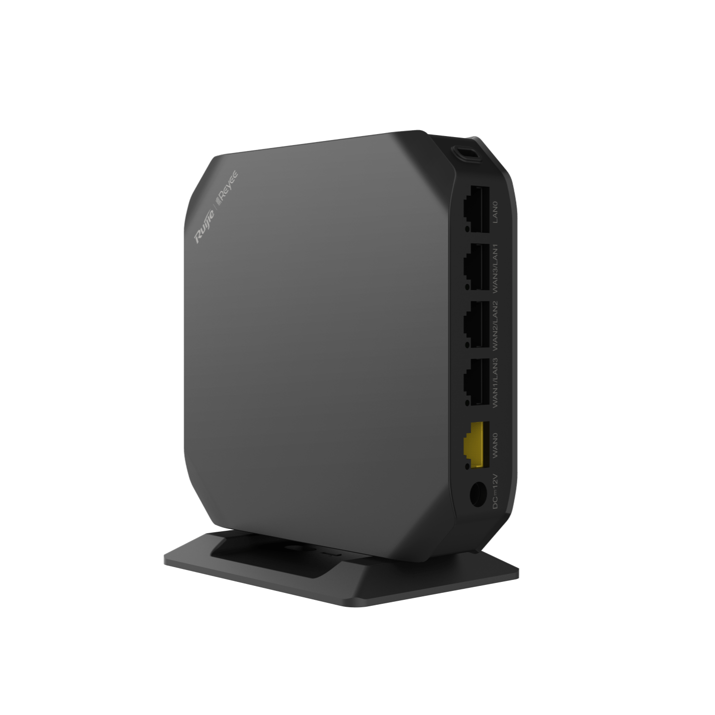 Desktop All-in-One enterprise-class wireless router, including 5 Gigabit ethernet ports, support 1 WAN port, 1 LAN port, and 3 LAN/WAN ports; maximum of 150 concurrent users,including 80 wirelesee users are recommended, With a recommended throughput of 600Mbps; supports Ruijie Cloud remote management and MESH. 12VDC power adapter is enclosed.